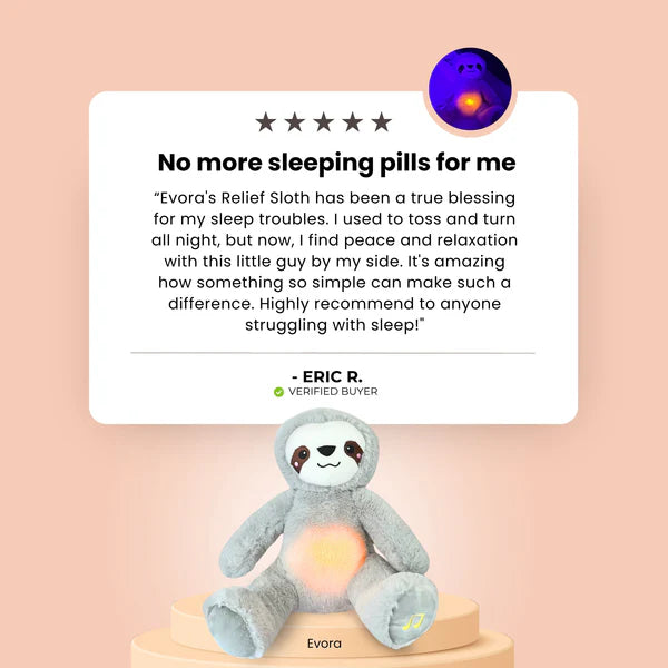 Let our Relief Sloth gently calm your body, creating a peaceful retreat for a good night’s sleep.